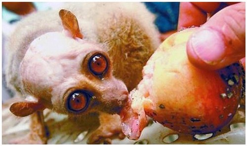 O "ET" era, na verdade, um macaco tarsius desnutrido. Ele agora está sendo alimentado com pepinos e pêssegos.