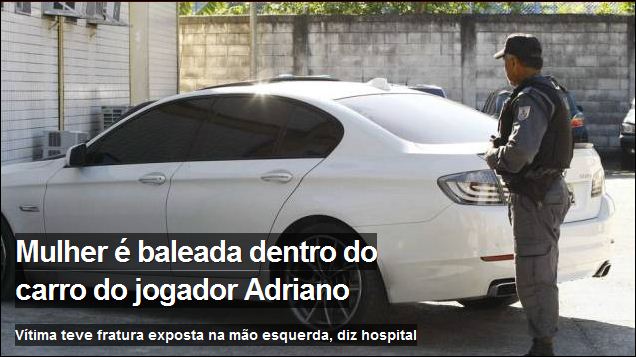 A polícia informou ainda que Adriano está em casa e não foi prestar depoimento na 16ª DP, onde o caso foi registrado. O carro de Adriano foi levado para a delegacia. No carro, é possível ver a marca do tiro e sangue no banco de trás.